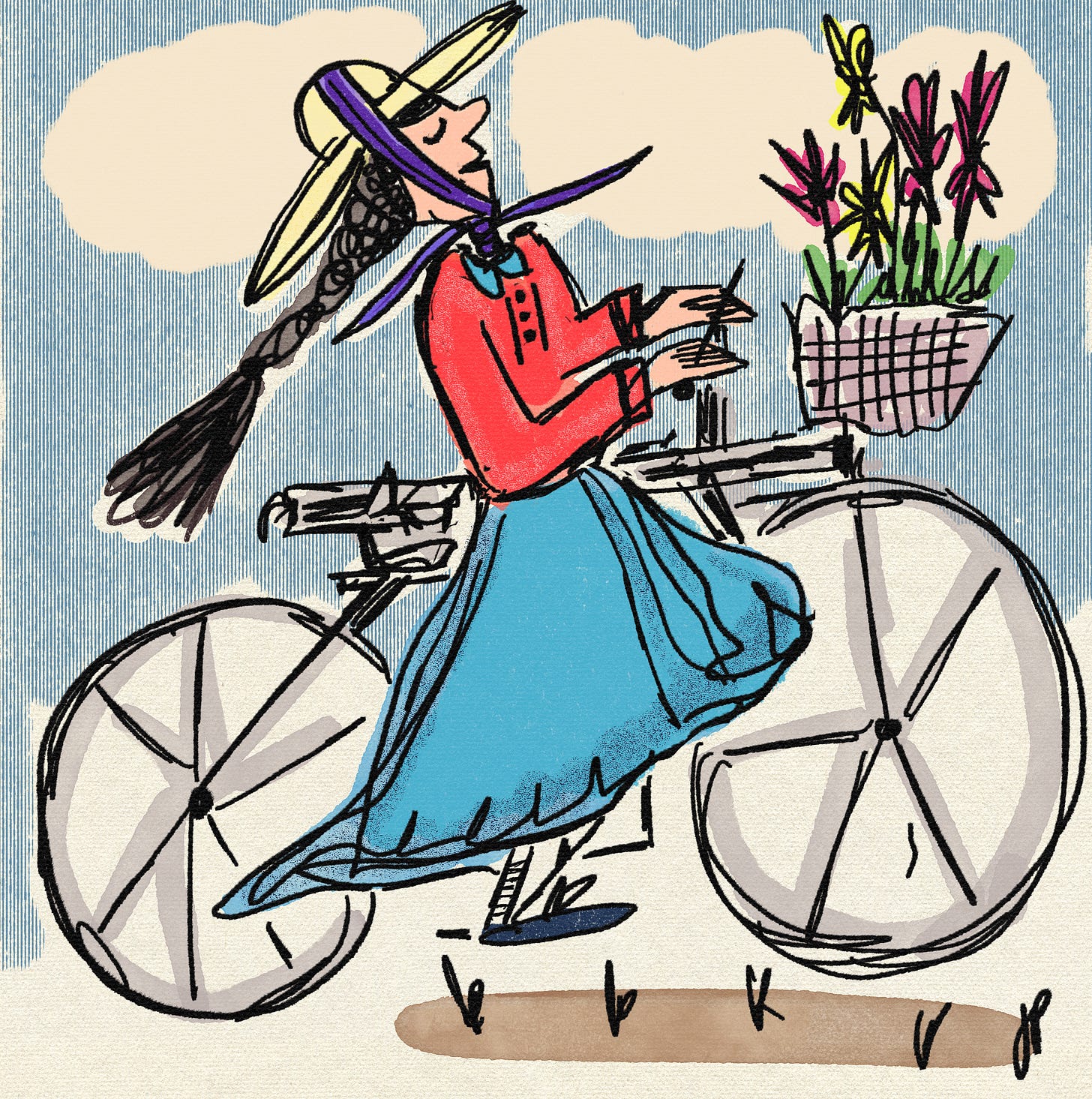 Her skirt was bright and colourful, of a size and nature that seemed immediately inconvenient on a bike, but didn’t appear to be inconvenient to her.