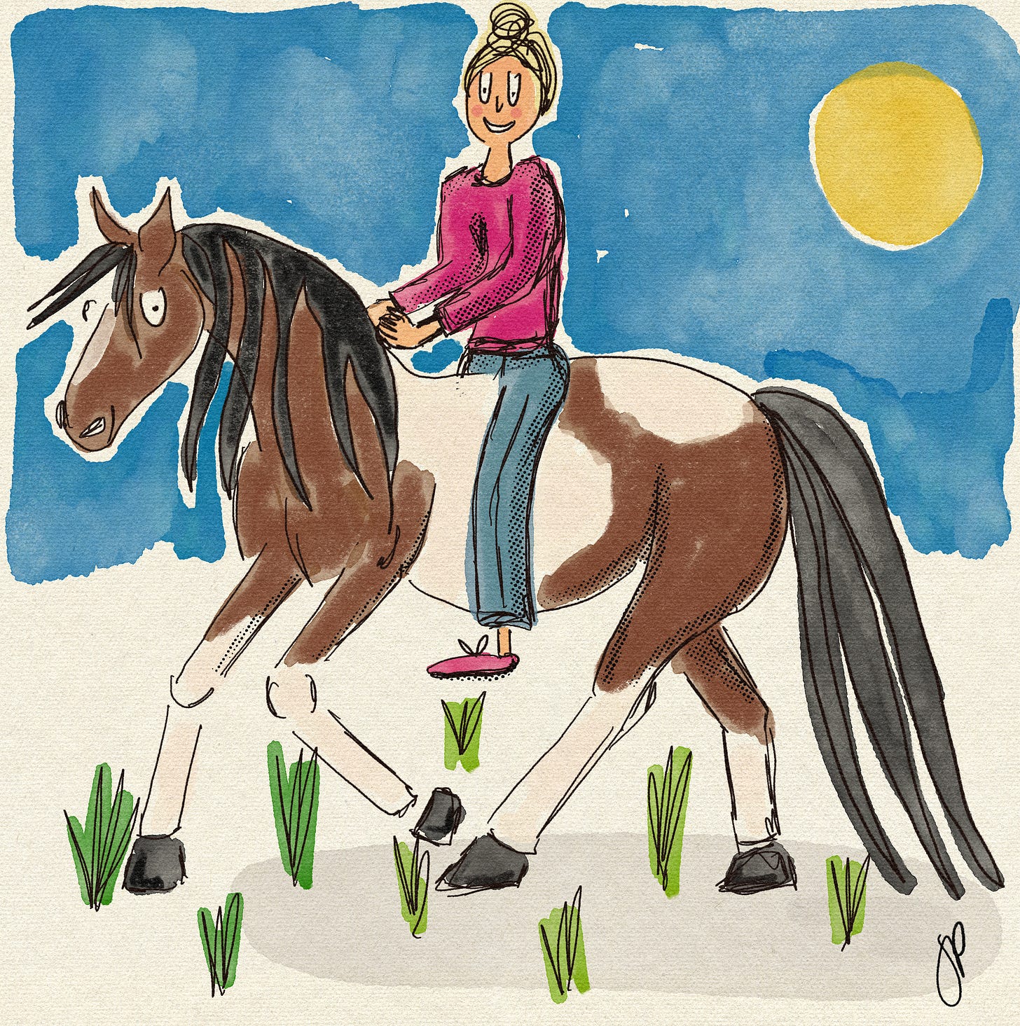 I rode and the Little Me with me. Enjoying the sun and our horse, and all the four legged beings we’d loved who’d carried us before.